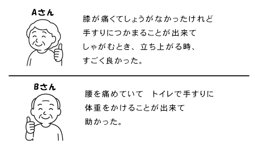 手摺をつかむことで 膝への負担が軽減されることがわかっています。